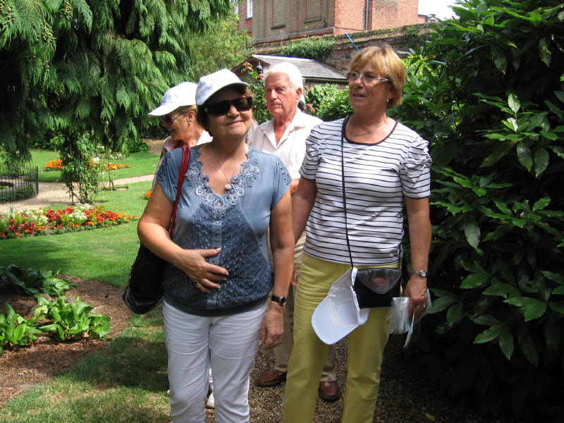 Das Partnerschaftskomitee aus Sleaford, unserer englischen Partnerstadt, hatte Bürger aus Fredersdorf-Vogelsdorf und aus Marquette lez Lille in Frankreich zu einem gemeinsamen Partnerschafts-Wochenende am 27. und 28. Juli 2013 eingeladen. 11 Fredersdorf-Vogelsdorfer sind dann am späten Abend des 26. nach England geflogen. Wir wurden mit einem Kleinbus vom Flughafen Stansted abgeholt, erreichten Sleaford nach zweistündiger Fahrt nachts um 1 Uhr und wurden von unseren Gastgebern herzlich empfangen. Am Samstagmorgen trafen wir uns dann mit 25 unserer französischen Freunde, den Gastgebern aus Sleaford und dem Sleaforder Bürgermeister auf dem Marktplatz. Mit einem Reisebus ging es dann durch das Fen, einem trockengelegten Moor, das heute eines der größten Gemüseanbaugebiete Englands ist. Unser Ziel war Wisbech, eine kleine Hafenstadt an der Ostküste Mittelenglands. Hochinteressant war der Besuch von Elgood’s Brauerei, in der seit 1795 Bier gebraut wird. Wir erfuhren viele Einzelheiten über die Kunst des Brauens und konnten einen wunderschönen Garten besichtigen. Dann ging es weiter zum Peckover House, einem Kaufmannshaus aus dem 18. Jahrhundert mit einem großen als Park angelegten Garten. Das war der richtige Ort für ein ausgiebiges Picknick, welches unsere Gastgeber vorbereitet hatten. Dann besichtigten wir das direkt am Fluss Nene gelegene Haus und verschafften uns einen Eindruck über Lebensumstände einer wohlhabenden Kaufmannsfamilie im 18. Jahrhundert. Zurück in Sleaford mussten wir uns schon wieder beeilen, denn der Bürgermeister Mr. Brian Watson hatte zu einem Empfang mit anschließendem Buffet in den Solo Club eingeladen. Es kamen viele interessante Gespräche zustande, denn an jedem Tisch hatte man eines der Sleaforder Ratsmitglieder platziert. Brian Watson, Bürgermeister und Mitglied des Stadtrates, übergab uns ein Erinnerungsgeschenk an den Fredersdorf-Vogelsdorfer Gemeinderat. Den Sonntag verbrachten wir dann im Garten von Bruni Brock, einer Deutschen, die seit vielen Jahren in Sleaford wohnt. Bruni leitet eine Gruppe von Sleafordern, die die deutsche Sprache erlernen möchten. Alle zusammen hatten einen vorzüglichen Brunch mit typisch englischen Spezialitäten vorbereitet und für allerlei Unterhaltung gesorgt. Nach unserem Empfinden viel zu früh stand der Minibus vor der Tür, der uns wieder zum Flughafen brachte. Wir bedanken uns bei unseren englischen Gastgebern und unseren Freunden vom Twinning Komitee sowie bei all denen, die zum Gelingen dieses Wochenendes beigetragen haben.
